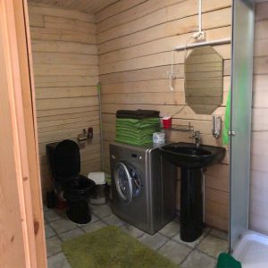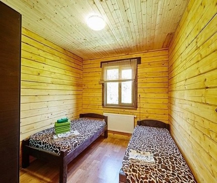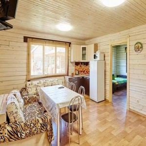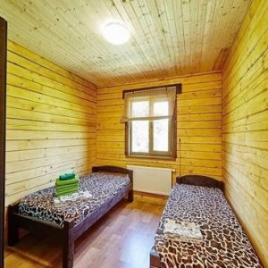 • Проживание в комнатах по 4 человека (по 2 комнаты на домик). В доме есть полноценная кухня – гостиная, шкафы, санузел с душевой кабиной и горячим водоснабжением, стиральная машина, спутниковое TV.