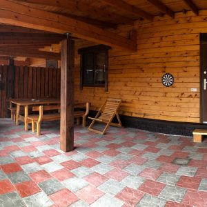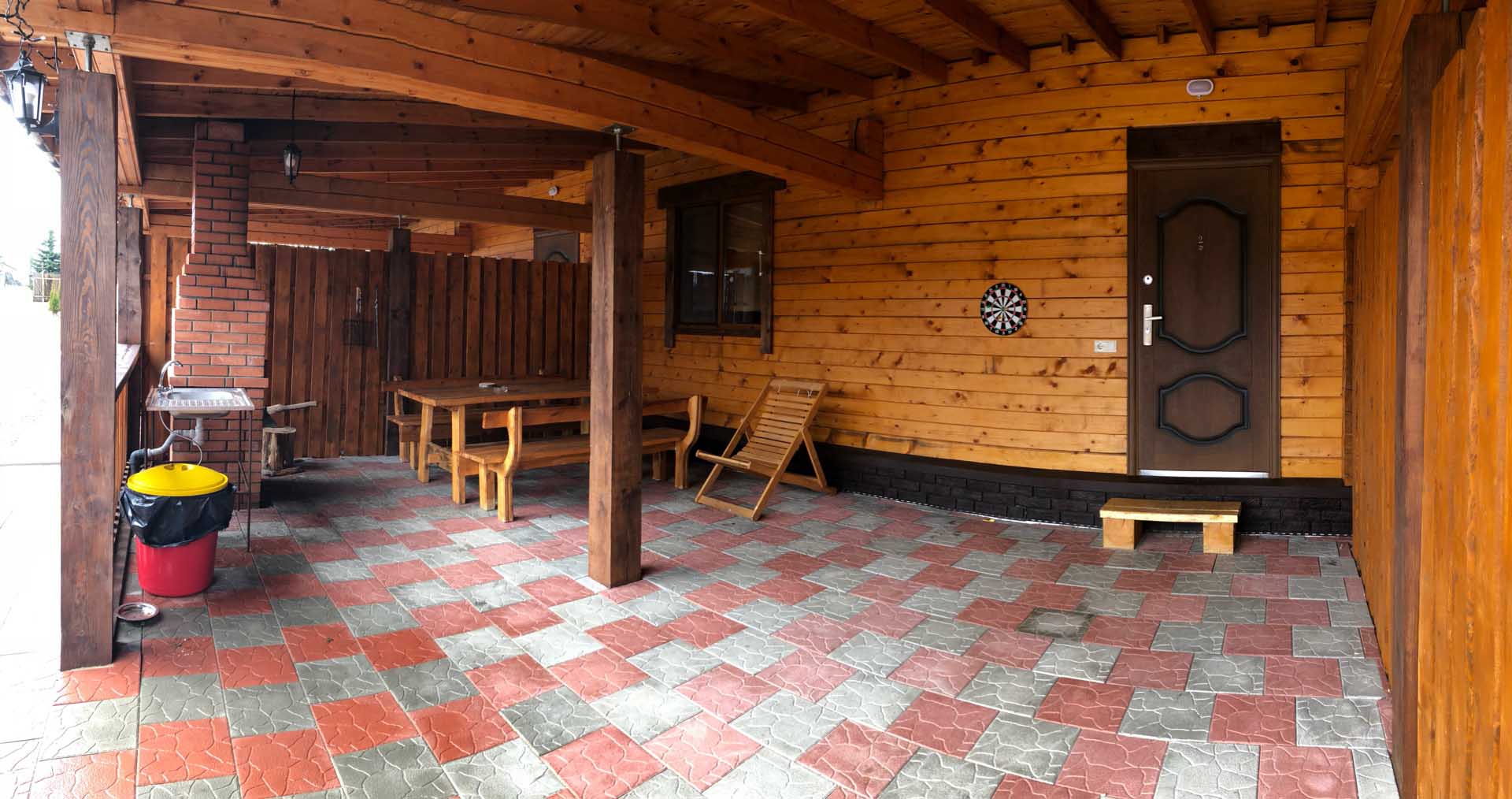 Несколько уютных домов со своими террасами, зонами барбекю. Есть футбольное поле, батуты, мини – футбол, волейбольная песчаная площадка, настольный теннис, бильярд, тренажерные снаряды, большая детская площадка, отдельный дом – столовая и зал для проведения мастер классов и дискотек, катамаран, велосипеды, мини- зоопарк.